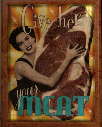 (上:肉屋内部に貼ってあったポスター。"Give her your MEAT" 確かに人肉混じりだもんな。ウソはついてない)