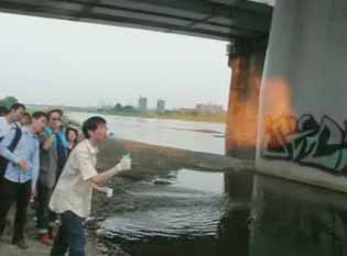 臭いになれたギャラリーが記念撮影を開始する中、たびたび様子を伺う無関係のカップル。