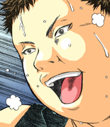 次は準決勝で河井武士と対戦するはずの香取石松。彼はひょうきんなキャラクターで、このアニメではお笑いキャラとしての役割を与えられているはずです。実際に彼の戦法は「トランクスから見えちゃいけないところが見えてるぜ」と相手に囁き、相手が気にしたところを殴り飛ばすという、まったくギャグそのものなのですが、しかし、彼がどんなに頑張っても河井武士の変態には及ばないのが実に憐れです。