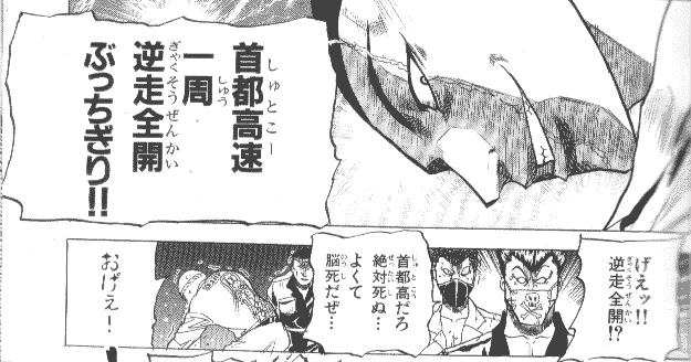 第二シリーズ敵キャラクター。 みんな大好き座羅月龍頭(ざらつきりゅうと)。 異名は「人間怒羅ゴン」「関東平野の悪い夢」 ![]() そんな座羅月さんの暴走族ライフ。 「首都高だろ、絶対死ぬ…よくて、脳死だぜ…」 「おげぇ!」