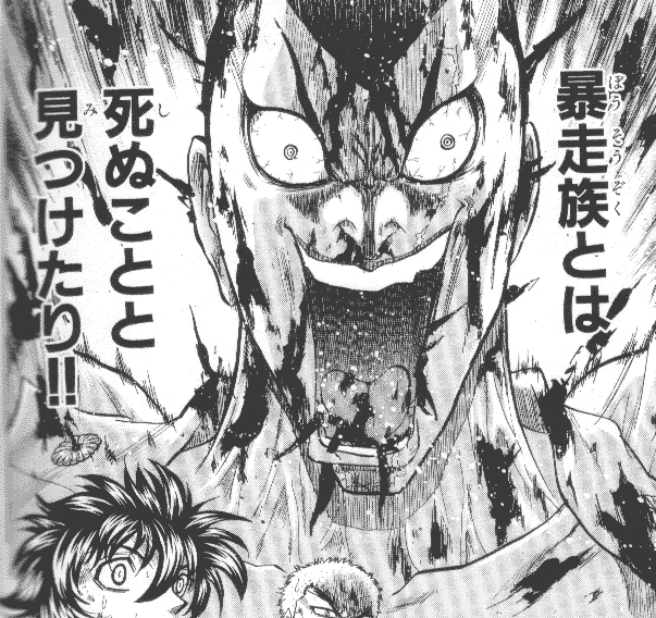 覇王餓瑠屍鐚副総長 危代原樺太(きよはらからふと)「危険な悪の知能指数IQ4649」 ![]() 覇王餓瑠屍鐚特攻隊長 絶海救流(ぜっかいぐる)「平成非行少年の極北」